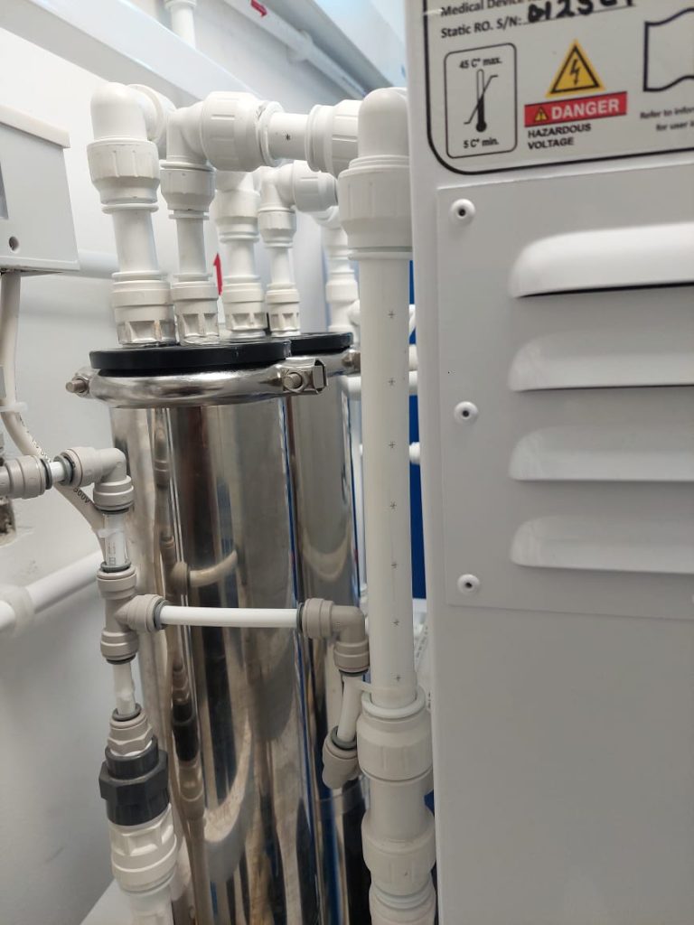 • single-pass configuration to produce 600 litres/hr permeate to meet HD quality